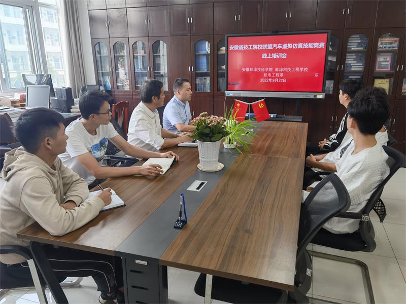 9月22日下午,机电工程系组织参赛师生共计5人参加了由安徽省技工院校联盟主办,安徽阜阳技师学院和上海景格科技股份有限公司协办的2022年安徽省技工院校联盟汽车技术虚拟仿真技能竞赛线上培训会。