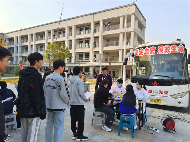 献血车一到教学楼,符合年龄的同学便排起了队。学生献血志愿者在工作人员的引导下,有条不紊地填表、体检、取样化验、接受血液采集;院领导陈华坤副院长亲临现场看望慰问参与献血的同学们,医务人员耐心地为志愿者解答有关献血的疑惑和问题,并告知他们献血后需要注意的饮食及健康生活习惯。现场还为献血志愿者们准备了糖水,帮助他们尽快恢复身体能量。献血结束后,学生处老师和医务人员逐一叮嘱同学们稍作休息,耐心讲解献血后注意事项,待确认身体无异常反应后方可离开。
