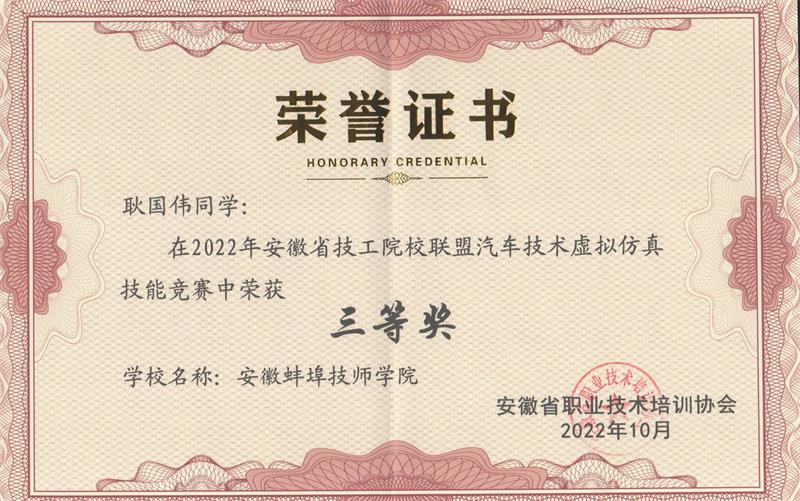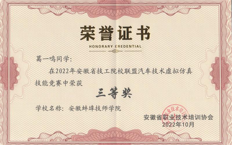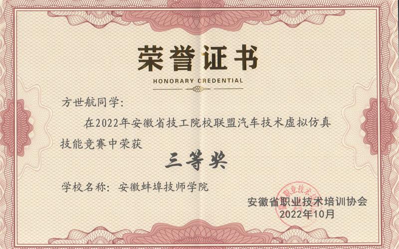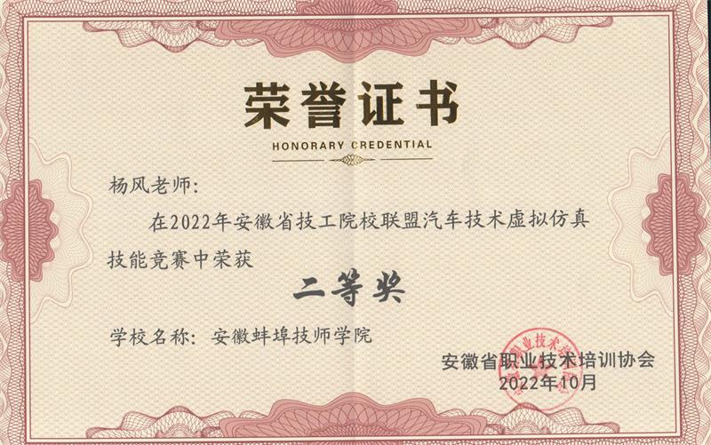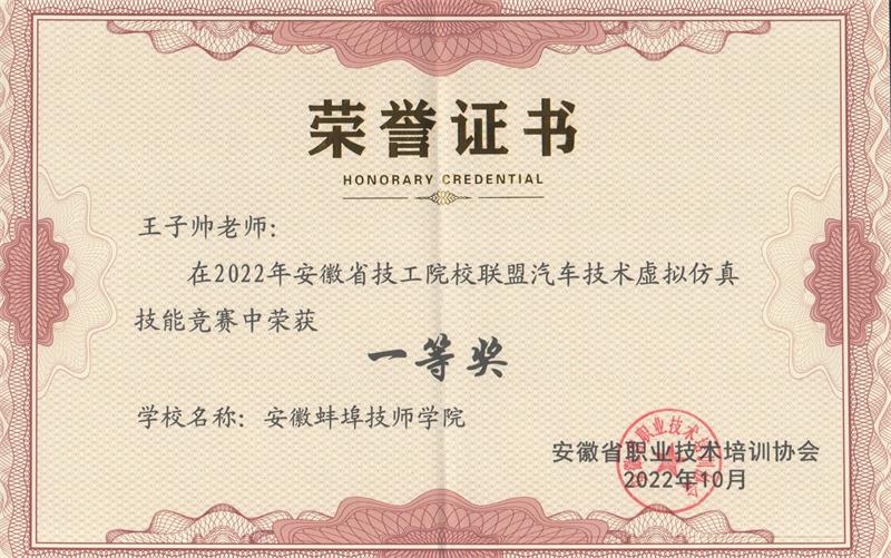 2022年9月30日上午,安徽省技工院校联盟汽车技术虚拟仿真技能竞赛通过线上方式在各联盟成员单位成功举办。我院机电工程系王子帅、杨风两位老师分别荣获教师组一、二等奖,参赛的3名学生在杨风老师指导下荣获3个三等奖。