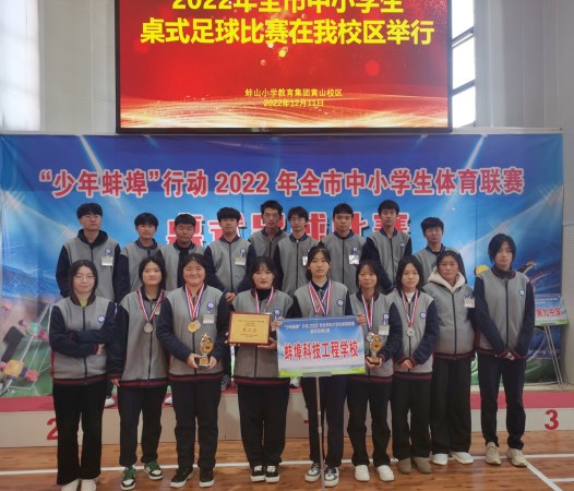 12月11日,“少年蚌埠”行动2022年全市中小学生体育联赛桌式足球比赛在 在蚌山小学教育集团黄山校区举行。我校有18名学生参加了高中组比赛,比赛项目分为男子双打,女子双打、混双和团体项目。