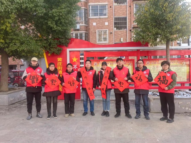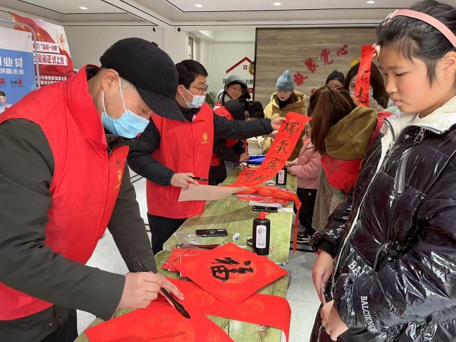 兔年新春佳节将至,1月17日上午,蚌埠技师学院第四党支部联合蚌山区黄庄街道红旗社区举办“我们的节日·春节”主题活动,四支部书记张静携支部3名党员及支委同志,在红旗社区一楼便民大厅挥毫泼墨、笔走龙蛇,为社区居民书写春联、送福字,将满满的祝福传达给社区的家家户户。