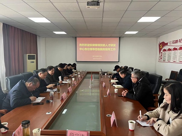 2月16日上午,安徽银领技能人才研发中心刘光明总指导一行来我院就KOS试点院校以及师资培训定制班相关事宜进行调研。院领导陈元高、宋晓宾、姚卫宁陪同参观调研。