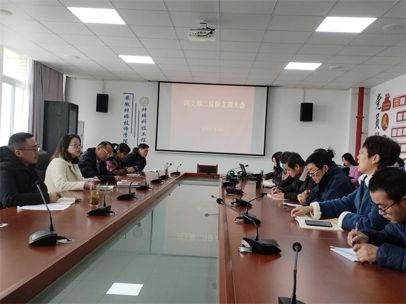 2月28日下午,蚌埠技师学院第四党支部在行政楼404活动室召开二月份支部党员大会,会议由支部书记张静同志主持,四支部全体党员参加会议。