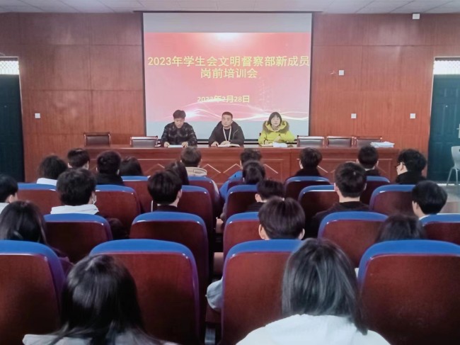 为进一步提高学生作为学生会一员的思想觉悟,规范文明监督中的过程,强调自律的重要性和自我管理,自我服务等方面的能力,李恪处长,房慧萍副处长、宋雨晨老师和56名文明督察员参加此次会议。