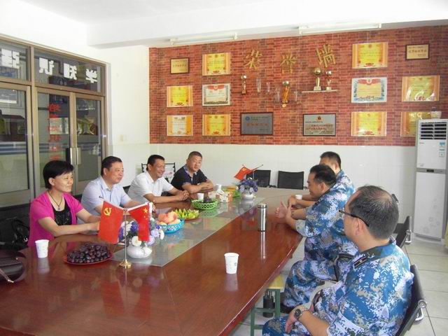 7月22日,在中国人民解放军建军87周年即将到来之际,蚌埠职教中心(蚌埠技师学院)校长陈元高、党委书记胡业武、副校长张玉琳等前往军民共建单位—海军蚌埠士官学校学员六大队走访慰问,受到了六大队李大队长等领导热情接待。双方畅叙共建友情,陈元高校长等代表学校向六大队送上了价值2000元的食用油,祝官兵们建军节快乐!