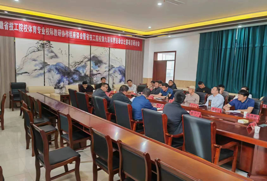 为深入贯彻落实党的二十大精神,加强安徽省技工院校学生体育工作。3月10日,全省技工院校校际体育教研协作组工作座谈会暨全省技工院校第九届体育运动会比赛项目研讨会在阜阳颍泉技工学校召开。安徽省人社厅职建处杨礼球、安徽省技工院校校际体育教研协作组牵头单位蚌埠技师学院宋晓宾与协作组成员单位代表共同出席会议。会议由阜阳颍泉技工学校刑钊主持,颍泉区人社局张林致欢迎辞。铜陵技师学院贾健、合肥技师学院魏持振、霍山技工学校何庆祥、广德技师学院等院校体育专业专家和骨干教师参会座谈。
