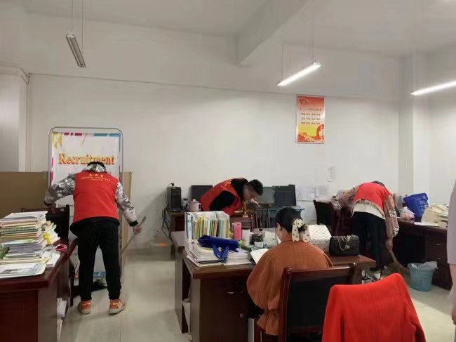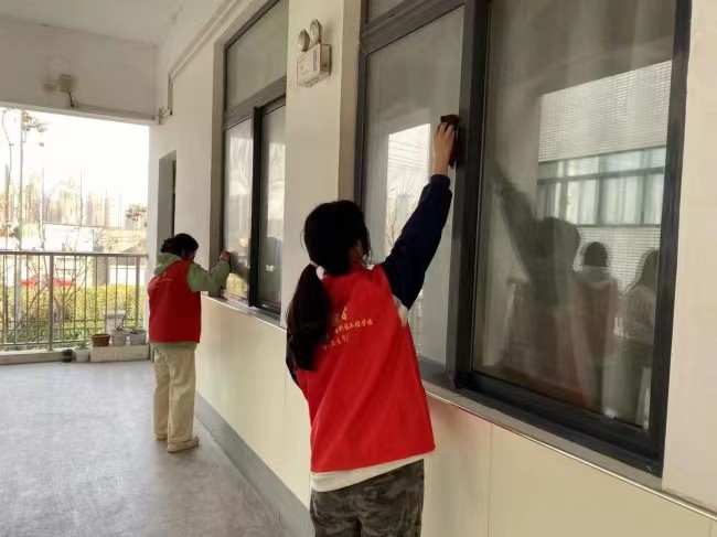 志愿者们发扬不怕脏,不怕累的雷锋精神,扫地、拖地、清理拐角杂物,擦玻璃等为学院教师的办公环境都进行了细心的清理。