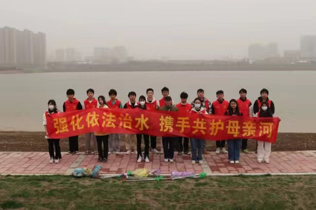 为深入贯彻党的二十大精神,贯彻落实习近平生态文明思想、习近平法治思想和习近平总书记治水重要论述精神,3月23日下午我院总务处和团委组织带领17名学生前往“靚淮河”工程附近,解放桥北岸附近进行“强化依法治水,携手共护母亲河”志愿活动。
