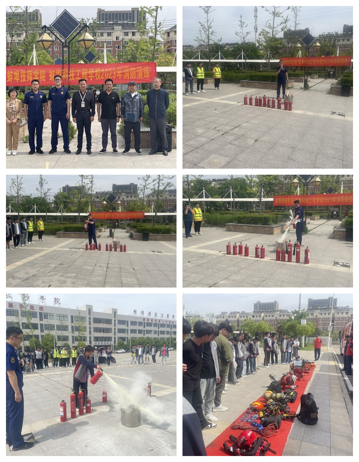 进一步增强全校师生消防安全意识,5月16日下午,在西南门广场,我院保卫处邀请淮上区消防救援大队,组织开展了消防安全知识现场讲解及消防演练等系列活动。学院领导和保卫处、学生处出席参加。