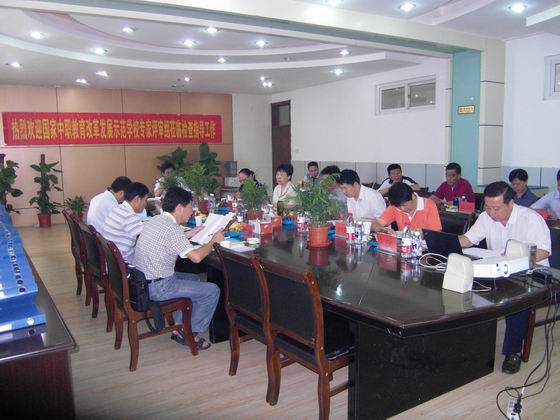 7月14日,国家中等职业教育改革发展示范学校省专家组孔令刚、夏永强、开俊三位专家莅临我校,对我校申报国家中等职业教育改革发展示范校进行评估检查。市教育局副局长刘善训、市人社局副局长刘宗文,市教育局助理调研员郭玲,市教育局职成教科科长崔云,市人社局职业能力建设科科长金在新出席汇报会。汇报会由刘宗文主持。