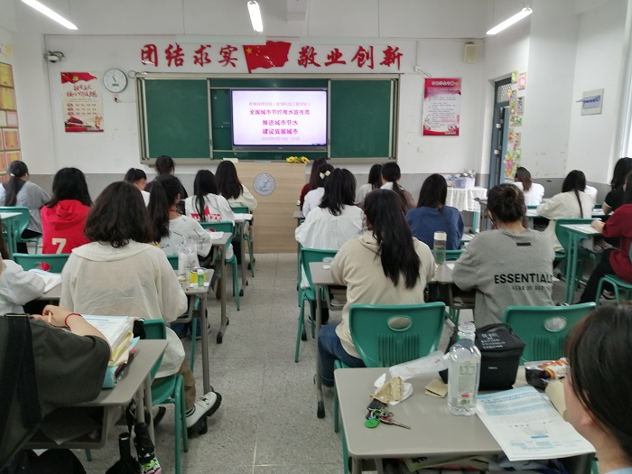 活动期间,学校总务处通过电子屏滚动播放主题海报和节约用水科普知识,进行节水宣传教育。总务处老师精心准备,走进教室给大家上节水课,向同学们介绍我国城市节水周的来历和意义,并通过幻灯片动画形式展示了自来水制作工艺流程和各个环节。课堂上,老师和同学们分享了节水故事、节水小妙招、节水小发明,呼吁同学们珍惜水资源,同时指导学生学会二次用水,使用淘米水、洗菜水浇灌绿植、冲洗马桶,使用洗衣水拖地等节水方法。