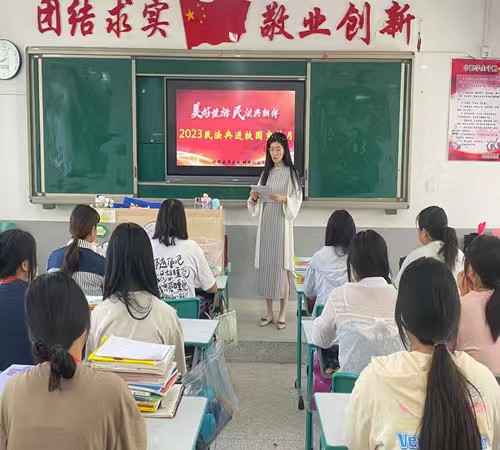 宣传周期间,通过设置宣传展板、悬挂横幅、派发普法资料等形式宣传《民法典》出台的意义及基本原则,并结合师生关注点,通过以案释法、条文解读方式诠释民法典相关内容。同时,通过开展教职工集中学习、主题班会等形式组织广大师生就民法典的内容、意义展开学习讨论,在全院掀起学习宣传《民法典》的热潮,引导广大师生不断增强法治意识,同时学会用法律武器维护自身合法权益。