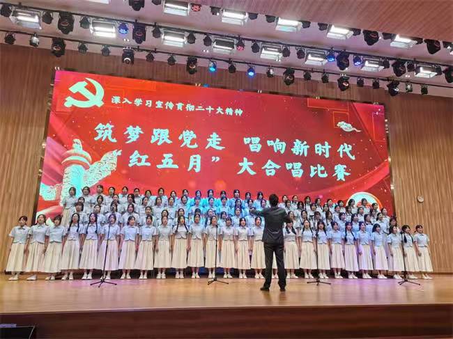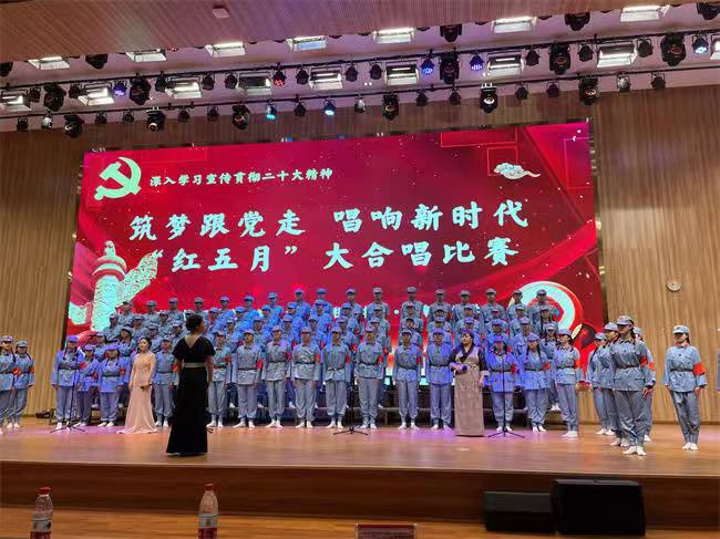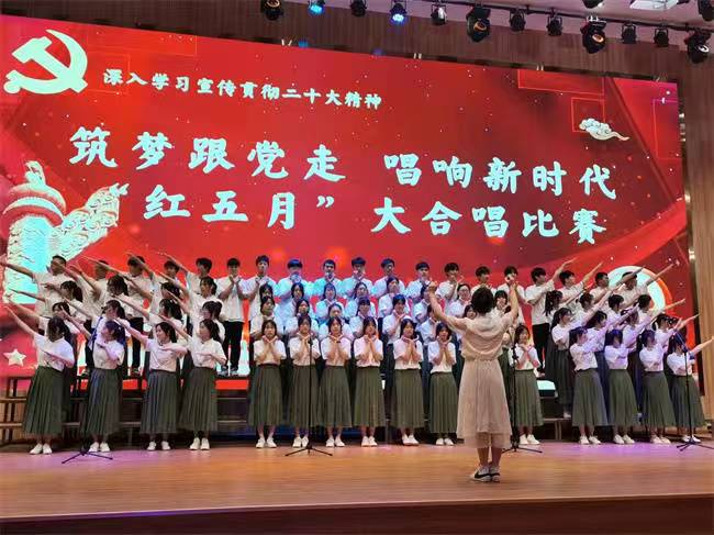 “红五月”作为我院系列品牌德育活动之一,已持续开展23年。今年的“红五月”我校以深入学习宣传贯彻党的二十大精神为主题,传承红色基因,陶冶学生爱国、爱党、爱校的高尚情操,树立学生朝气蓬勃,积极向上的精神风貌。5月26日早上8:30,“红五月”筑梦跟党走、唱响新时代经典诵读暨大合唱比赛,在园区报告厅隆重举行。市人社局职建科科长鲍帅、职教园区协调办负责人张文恺及院领导出席了本次活动。