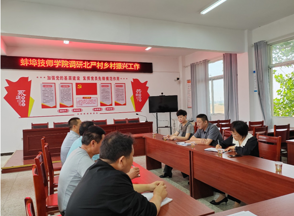 调研座谈会上,北严村党总支书记余兴红介绍了北严村基本情况、集体经济发展情况和美好乡村建设路灯亮化工程规划情况。朱冬民表示,学院将继续发挥教育资源优势,积极支持北严村发展,开展送技送教、送医义诊和就业帮扶等工作。朱冬民要求学院选派干部,要扎根乡村,努力工作,为北严村乡村振兴做出新贡献。