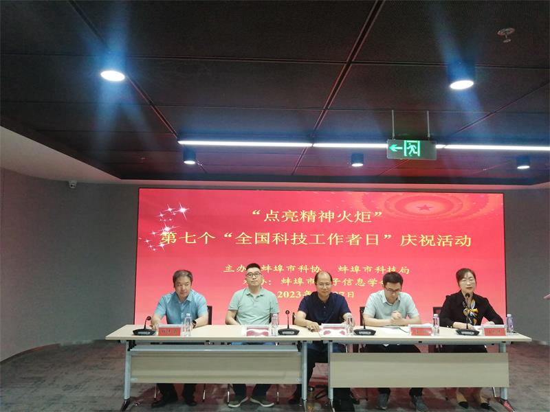创新引领发展,奋斗成就美好。5月27日下午,由蚌埠市科协、蚌埠市科技局主办,蚌埠市电子信息学会承办,以“点亮精神火炬”为主题的2023年第7个“全国科技工作日”庆祝活在蚌埠市创新馆盛大召开,市科协党组成员、副主席冯国富出席活动并致辞。市科技局、市经信局有关领导,学会会员及兄弟学会代表、多行业的科技工作者专家、企业精英近百人参加。我校骨干教师田景新作为会员单位代表参加了此次活动。