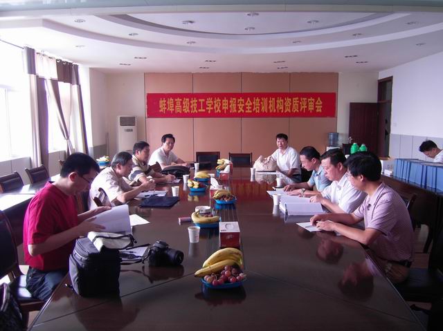 我校是安徽省安全生产监督管理局批准的安全培训机构,2012年8月24日,省、市安全生产监督管理部门四名领导组成的评估组莅临我校,对我校安全培训机构资质进行复评。