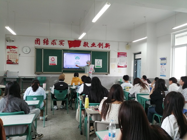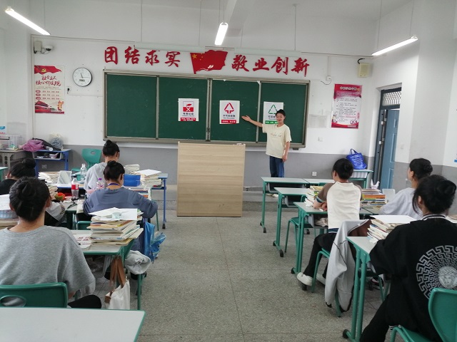 活动中,总务处老师走进教室,通过PPT和小视频结合的方式给学生们讲解了垃圾的危害、垃圾分类的意义、什么是生活垃圾分类、如何进行正确的垃圾分类。经过生动形象的讲解,同学们对垃圾分类有了更深入、更全面的认识。“废旧灯管属于哪类垃圾?大棒骨是易腐垃圾吗?旧衣服是可回收物吗?”课堂上老师设置垃圾分类知识抢答环节,同学们积极踊跃参与问答,师生互动,气氛热烈,将生活垃圾分类内化于心、外化于行。