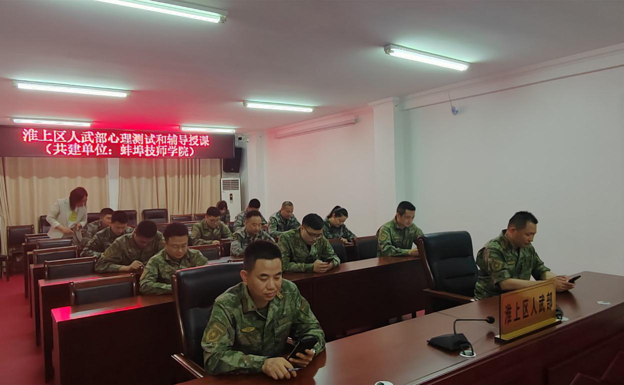 为推动军民共建活动深入发展,切实关爱部队官兵身心健康,更好地提高部队战斗力,6月6日,蚌埠技师学院(蚌埠科技工程学校)党委安排学院专任心理咨询教师刘芳赴共建单位淮上区人武部开展心理测评与辅导。