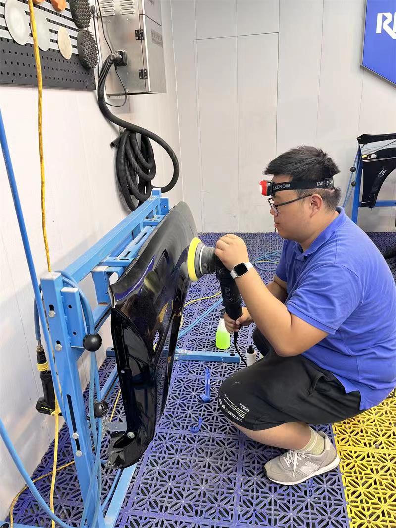 参训教师彭佳威老师主要针对汽车精致清洗、抛光、发动机清洗、汽车太阳膜、改色膜及隐形车衣的粘贴等汽车美容项目开展技能提升培训。程永奇老师针对汽车隔音方案、电动尾门的改造与故障检测、顶棚翻新包覆、内饰装饰等汽车改装模块项目学习。
