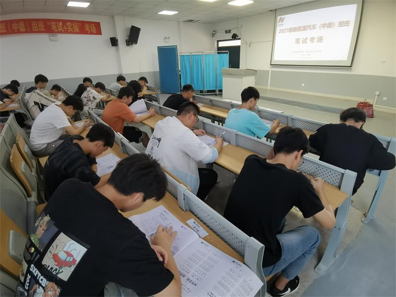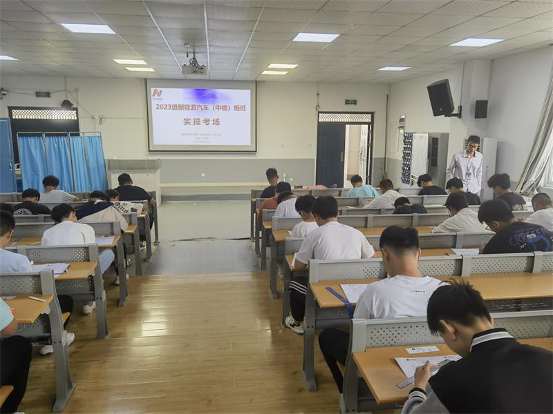 按照“中德先进职业教育合作项目”组班的要求,选拔过程将历经前期报名、宣讲、笔试、实操、综合面试等环节,最终确定入选人数。本次选拔在我校2023级新能源汽车运用与维修专业学生中开展,经过宣讲、预报名及初步筛选,共有58名同学参加了笔试和实操考试,经遴选49名学生脱颖而出,进入综合面试环节。面试过程中,重点对学生的语言表达能力、团结协作能力及解决问题的能力等方面进行综合考核。通过综合评定,最终确定了40名学生组建成立2023级中德先进职业教育新能源汽车班。