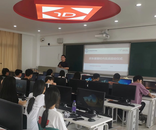 京东客服校内实战启动仪式于9月7日上午八点在学院的京东电商创新创业孵化基地顺利举行。我们分别邀请到了学院合作办学机构的杨光老师以及京东电商的李老师参与了启动仪式。
