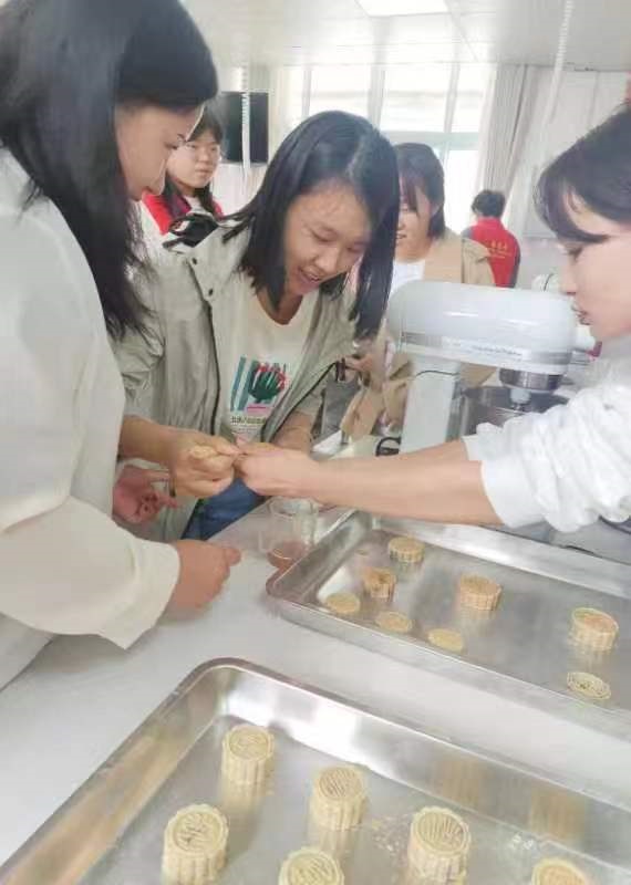 活动开始前由西点专业教师常灵凤为大家讲解了制作工序和工具使用,在老师的指导下,通过揉、捏、搓、按等步骤,大家都制作出了精致漂亮的月饼,在等待月饼出炉的时间,学生会的同学还向大家介绍了中秋节的由来与习俗,听着中秋故事,吃着自己制作的月饼,所有人都感受到了浓浓的节日氛围。