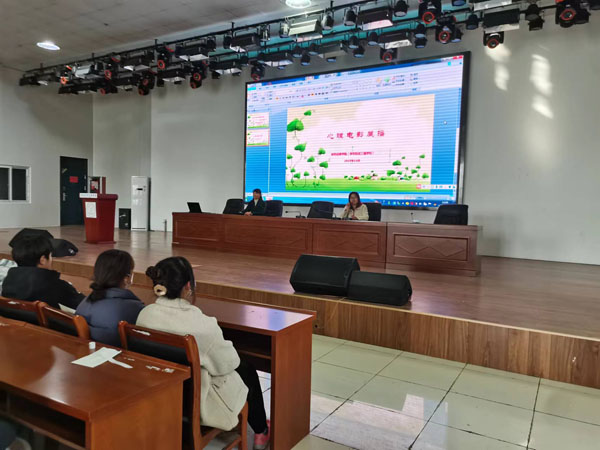 2023年11月28日下午,学院心理室陈老师和刘老师带领部分班级学生在我院多功能厅开展了“心随影动”心理电影展播活动。