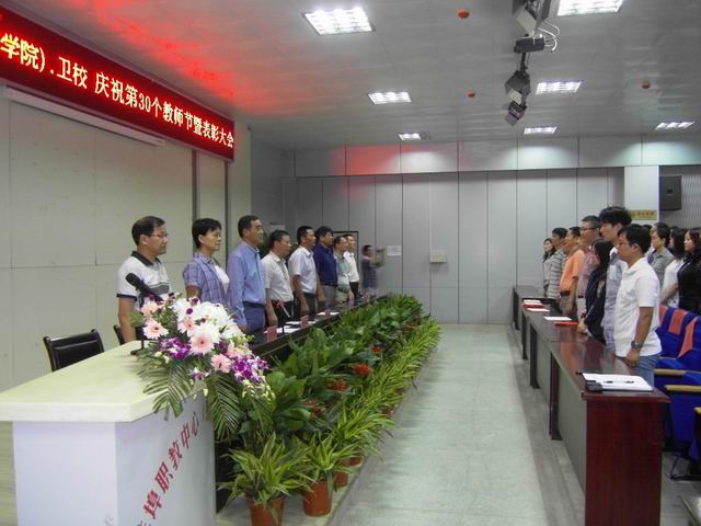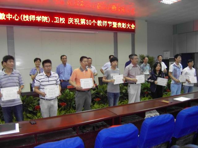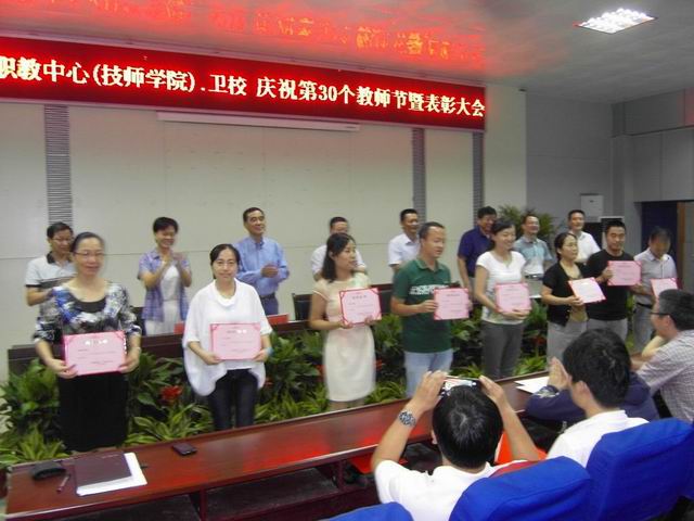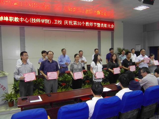 9月9日下午4:30,我校举行庆祝第30个教师节暨表彰大会,对2014年在省级以上技能大赛和课堂教学比赛中获奖的教师、2013年度考核优秀等次教职工以及评选出的校级优秀教师和师德标兵进行表彰。校领导陈元高、胡业武、马富强、卢嘉砾、张玉琳、宋晓宾、包太平、陈劲松出席大会。大会由校党委副书记马富强主持。