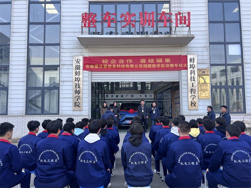 陈华坤副院长代表学院对安徽爱沃克信息科技有限公司的捐赠表示了感谢,对我院新能源专业的建设提出了希望和要求,并鼓励学生们努力学习,练就过硬本领,以真才实学贡献新能源汽车事业,回馈社会。