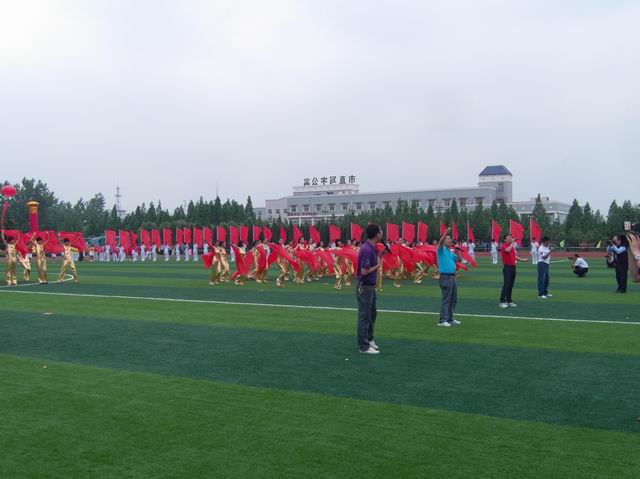 40分钟的演出,有威风锣鼓、广播操表演、团体操《向前冲》、歌伴舞《飞得更高》、情景剧《课间时光》,节目精彩纷呈,令人目不暇接。参加演出教师和学生300余人。主创人员全部是蚌埠职教中心(蚌埠技师学院)领导和教师。宝剑锋从磨砺出。从今年三月份开始,学校抽调师生利用课余时间开始了紧张排练,进行了三次彩排,市局领导每次都亲临排练场进行指导。