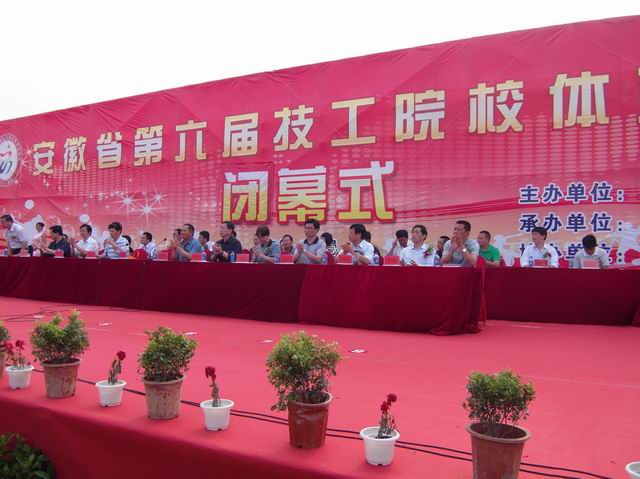 开幕式上,总裁判长王跃青宣布了比赛成绩,蚌埠市人力资源社会保障局副局长刘宗文宣布获体育道德风尚奖代表队和优秀组织奖代表队名单,省人力资源社会保障厅副厅长任予赞同志为获得团体总分前八名的代表队颁奖。省人力资源社会保障厅副巡视员潘亚群致闭幕词,任予赞同志宣布大会闭幕。会上,进行了会旗交接仪式,安徽省第七届技工院校体育运动会四年后在淮北市举行。