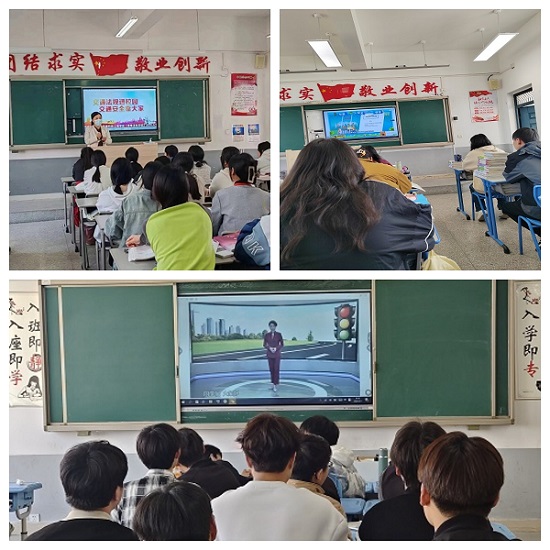 本次活动建立和健全了道路交通安全宣传教育工作制度,落实了交通安全责任制,做到分工明确、职责到位,学院担负起了对学生道路安全宣传教育的主体责任,并将责任分解落实到所有教师,切实加强学生道路交通安全宣传教育。根据学院出校门就是马路,车多、秩序乱的状况,引导学生如何在道路上行走、如何过马路、如何乘车才会有安全保障。引导学生自觉做到“过马路走人行道,行人不进入机动车道,严格遵守交通规则,确保生命安全”等。各班级进行相关交通安全教育主题班会,呼吁同学们在上学、放学过程中提高自我风险自我防范意识和能力,能有效预防和减少交通安全事故。