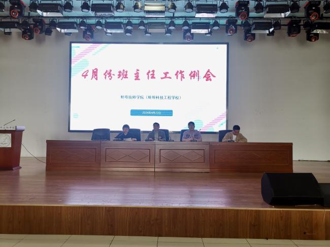 4月22日,我院在多功能报告厅召开了四月份全体班主任工作例会。此次会议总结了过去一个月的工作,分析当前形势,谋划下一阶段的工作,进一步推动班主任工作的深入开展,为学生成长与发展提供有力保障,会议由李恪处长主持。