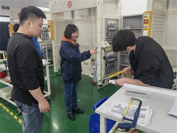 交流会上,机电工程系副主任方习贵对合肥向远轨道学校师生一行的到来表示热烈欢迎,简要介绍了我校基本情况及专业设置。重点介绍了机电工程系专业人才培养方案和系部专业构成和建设情况。电气安装与维护项目金牌教练康利亚老师介绍了电气安装与维护竞赛项目的日常训练及近年来获奖情况。简短交流后,参观了机电工程系各实训室建设。针对合肥向远轨道学校师生重点关注的电气安装与维护竞赛项目,机电工程系制定了详细的、科学的训练计划,主要从电气识图、线槽定位、切割、电气板接线、桥架、动力线及弯管引线等方面进行强化训练。