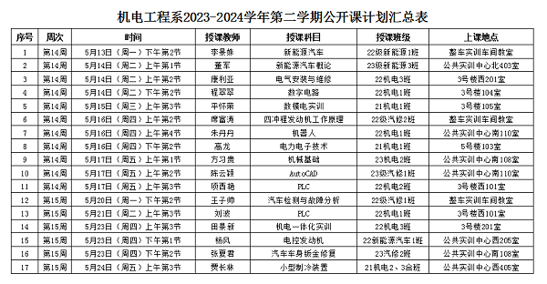 1.5月20日-24日,周实训班:23新能源汽车1班(发动机拆装实训);21机电1班(电子成品焊接实训);22机电3班(机电一体化、电气安装与维护)。