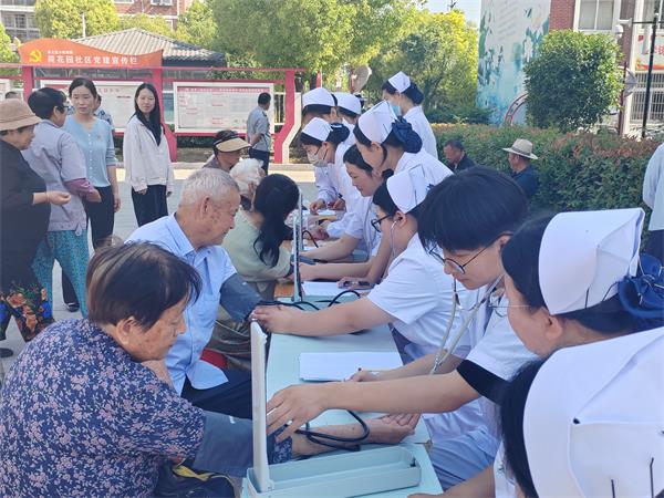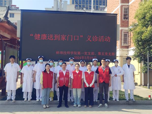 为增强居民的疾病防范意识,关爱社区群众身体健康。2024年5月23日上午,蚌埠技师学院第一党支部组织党员志愿者到共建单位荷花园社区,开展“健康送到家门口”义诊主题党日活动。第一党支部部分党员干部、志愿者和学校医护系学生参加了此次活动。