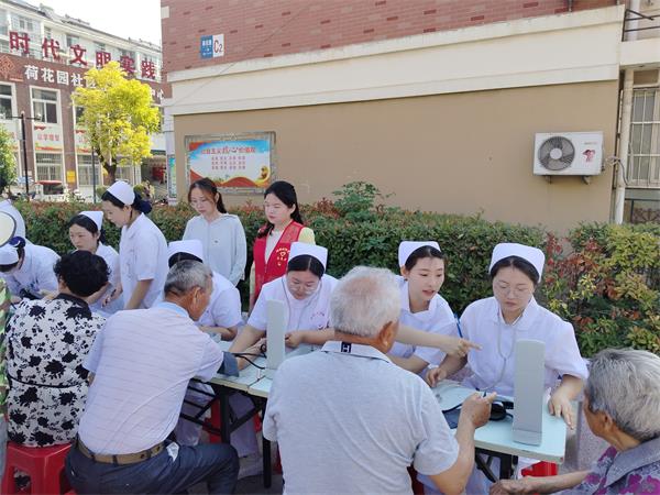 清晨,大家早早来到了荷花园社区活动广场,他们身着整洁的白衣,准备就绪,立即投入到为前来的社区居民开展血压测量、血糖检测以及医疗知识普及讲解,前来社区居民们在志愿者的引导下有序开展,细致地为他们测量血压,并根据测量结果给出相应的健康建议。除了基本的健康检查服务外,党员志愿者们还积极开展医疗知识普及活动。他们通过发放宣传资料、现场讲解等方式,向居民们普及急救常识、疾病预防等医疗知识,让居民掌握更多的健康常识。