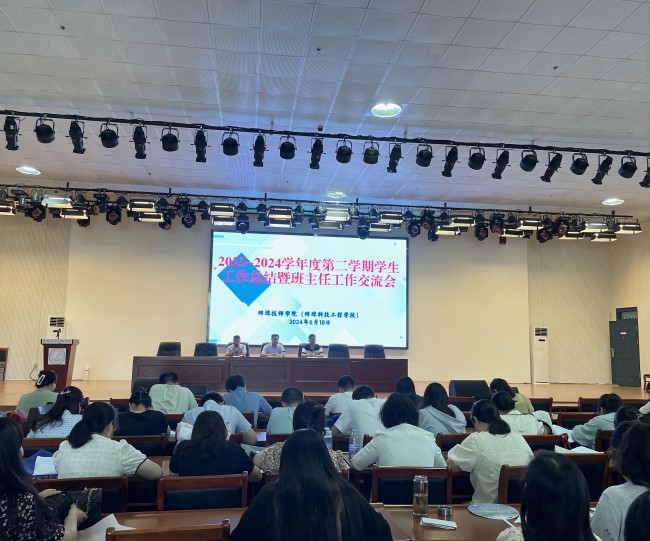 2024年6月18日上午,我院学生处组织召开了2023-2024学年度第二学期学生工作总结大会暨班主任工作经验交流会。此次会议旨在总结和推广优秀德育工作经验,启迪智慧,把德育工作走深、走实。会议由学生处处长李恪主持。