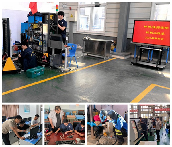 似火六月,骄阳当空。在其他师生迎来暑期,享受清凉的时候,在闷热的车间里,依然有那么一群人,正在热火朝天的操作着,他们挥汗如雨、全力以赴,共赴一个目标——2024-2025年度安徽省技能大赛,他们就是机械工程系暑期集训队的师生们。