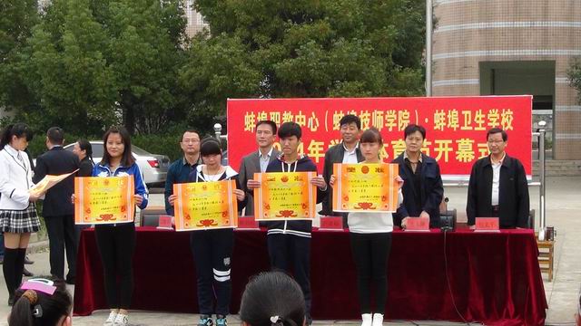 胡书记指出,蚌埠职教中心(蚌埠技师学院)·蚌埠卫生学校的体育运动有着优良传统,在各级各类比赛中成绩优异,人才辈出。这次体育节活动,将是对我校体育工作的一次全面检验,是对同学们体育素质和文明道德的综合测试,也是对班级建设和学生管理水平的一次考查,对于促进和推动我校体育工作、素质教育工作有十分积极的意义。为此,胡书记向同学们提出三点希望:一是希望全体运动员、裁判员遵守纪律、遵守规则,发扬良好的体育竞赛美德,争创各项比赛的优异成绩;二是希望各年级、各班级体育节工作人员精心组织,加强服务,确保安全;三是希望各班级发挥团支部、班委会的作用,认真对待每项比赛,场上场下的同学互相关心,互相支持,把本次体育节办成一个看水平、比团结、讲道德奋发向上的友谊盛会,把学校体育工作推上一个台阶。会上,裁判员代表徐何刚老师,运动员代表张怡文同学进行了宣誓。