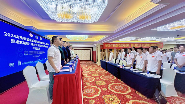 8月21日,一场备受瞩目的桌式足球教练员培训在蚌埠盛大开启。此次培训由安徽省体育局社体指导中心和蚌埠市文化旅游体育局主办,旨在提升桌式足球教练员的专业素养,推动桌式足球运动的高质量发展。安徽省社会体育指导中心主任韩承山,蚌埠市文化旅游体育局调研员产文杰,蚌埠技师学院党委委员、常务副院长陈华坤,全国桌式足球推广委员会副主任李德华等领导参加本次会议。