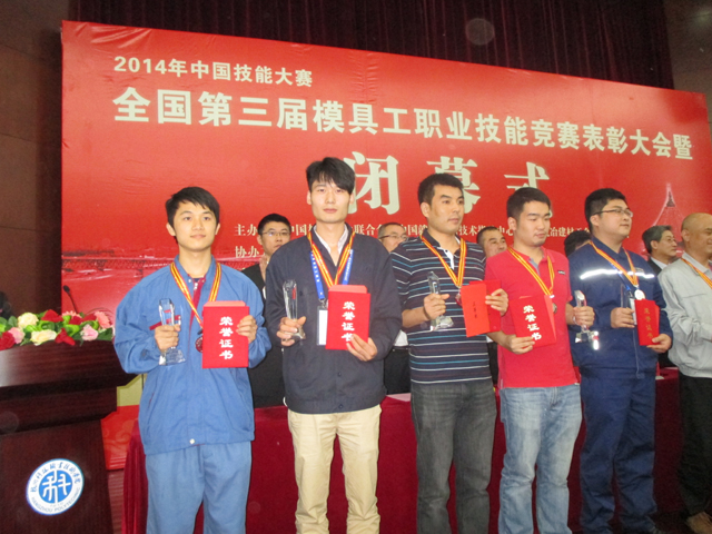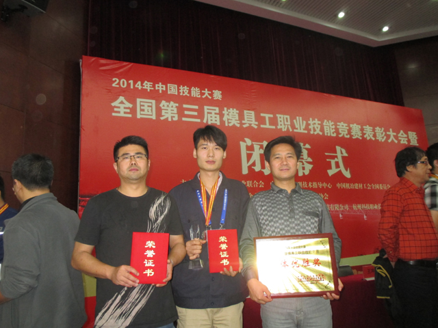 10月18日至20日, 2014年中国技能大赛—全国第三届模具工职业技能竞赛总决赛在浙江杭州举行。比赛盛况由中央电视台中文国际频道进行跟踪报道。本次竞赛由中国机械工业联合会、中国机械工业技能鉴定指导中心和中国模具工业协会共同主办,杭州科技职业技术学院承办。来自全国各大企业及职业院校共121人参加总决赛。我校模具专业刘乐园同学代表安徽省参加了注塑模具学生组项目比赛。赛前的反复训练和精心准备使参赛选手成竹在胸,在理论考试、三维软件操作和实操比赛中都能从容应赛,最终在激烈的角逐中荣获注塑模具学生组全国第三名的好成绩。学校因此获得大赛组委会颁发的“优胜组织奖”奖牌,指导教师王旭同志被大赛组委会授予“金牌导师” 荣誉称号。