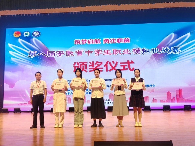 9月8日,安徽省第八届中学生职业模拟挑战赛决赛在合肥一中圆满落幕。本届安徽省中学生职业模拟挑战赛由共青团安徽省委员会、安徽省学生联合会主办,安徽省心理卫生协会青少年职业生涯发展教育专业委员会承办,经过评委的细致审核,最终有30名各个地市的学生入围决赛。我院陈文君老师带领23级护理9班沈奕同学参赛,经过前期“线上”初赛和“线下”决赛的激烈角逐,最终荣获全省个人一等奖、优秀指导教师奖,学校荣获最佳组织奖。