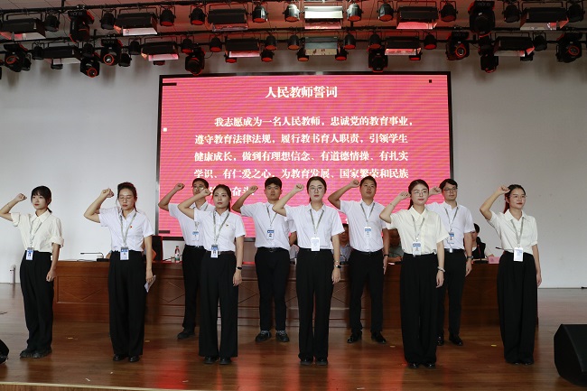 会议宣读了2024年教师节表彰决定。表彰本学年市技能大赛获奖指导教师、省教学能力大赛获奖教师、省市三优评选获奖教师及年度考核优秀等次人员,共100余位同志。教师代表上台发言,分享了自己在教学中的心得体会,表达了对学院和同事的感激之情,同时也展望了未来的工作方向和目标。新入职教师进行师德师风集体宣誓,承诺将坚守教师职业道德,以身作则,为培养优秀人才贡献自己的力量。