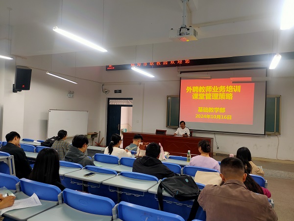 2024年10月16日,为切实强化新进外聘教师业务能力,大力提升教育教学质量,有效解决新进教师对中职学生学情特点认知不足、课堂管理效率偏低等问题,基础教学部精心组织召开了外聘教师业务培训会。此次会议由苏玉杰副主任主持,基础教学部全体外聘教师参会。