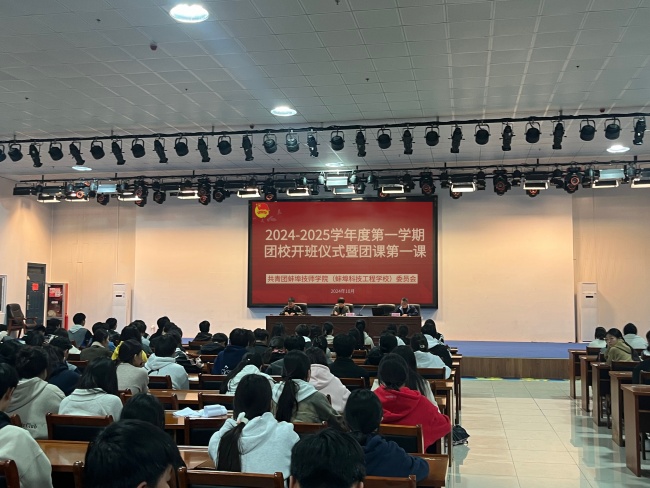 为贯彻落实党的二十大和二十届二中、三中全会精神,进一步夯实新时代团的基层组织建设,加强我院团学干部和团员青年的培养和教育,10月21日下午,学院团委举行2024-2025学年第一学期团校开班仪式暨团课第一课。蚌埠技师学院副院长陈垚出席开班仪式,机械工程系副主任田景新讲授团课第一课,会议由团委负责人宋雨晨主持,共260余人参会。