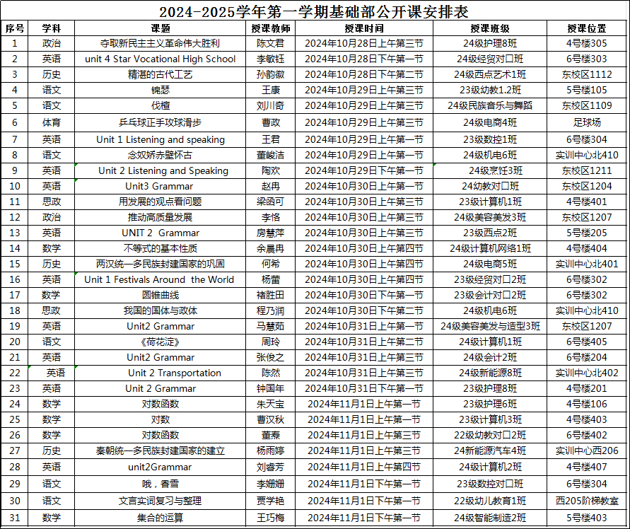 安徽蚌埠技师学院(蚌埠科技工程学校)·蚌埠卫生学校2024-2025学年度第一学期第九周工作安排