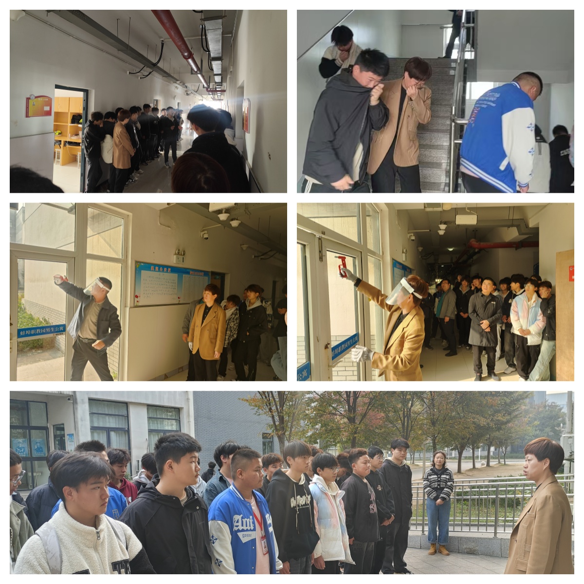 为进一步加强蚌埠技师学院消防安全工作,切实做好消防安全日主题宣传,提高学生火灾应急处置能力,学院保卫处会同公共服务系组织开展“全民消防 生命至上”系列活动。11月14日上午,由蚌埠技师学院副院长陈垚带队,保卫处、公共服务系、学生处开展学生公寓火灾疏散逃生演练活动,公共服务系部分师生和宿舍生活老师共同参与。