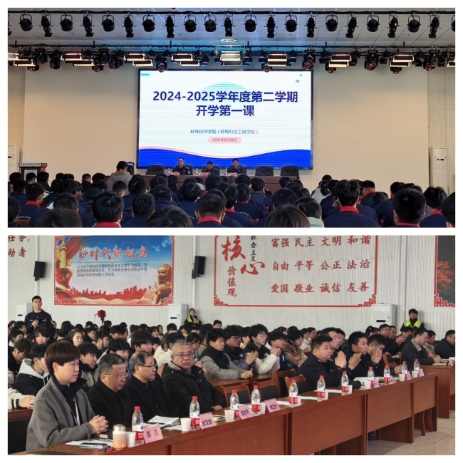 为深入贯彻《国家职业教育改革实施方案》和《安徽省教育厅关于做好2025年春季学期开学工作的通知》(皖教秘〔2024〕356号)文件精神,切实加强校园安全教育,提升学生的安全意识与道德素养,蚌埠技师学院于2025年2月28日上午成功举办了 2025年春季学期开学第一课活动。蚌埠市公安局反诈中心王康胤大队长、宣传科常宇柯,淮上分局刑侦大队反诈中队马超群队长,学院领导班子全体成员、各系部主任、班主任及思政课教师代表到现场出席了活动。活动由我院党委副书记、院长陈华坤主持。