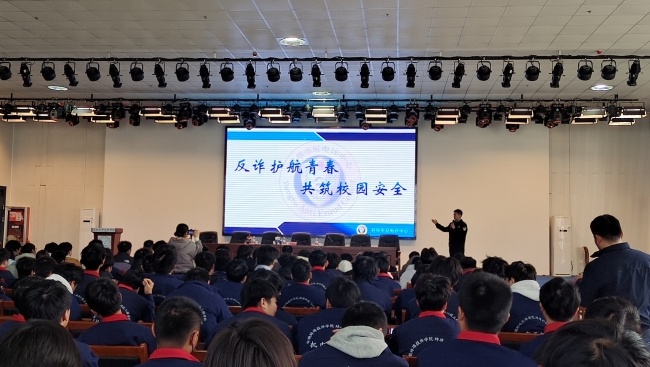 随后,蚌埠公安局反诈大队赵中一警官进行了专题讲座《反诈护航青春 共筑校园安全》。他针对当前高发的电信网络诈骗案件,详细剖析了诈骗手段和防范方法,通过真实案例让学生们深刻认识到诈骗的危害和复杂性。通过与学生们互动交流,进一步增强了学生们的防范意识和应对能力。